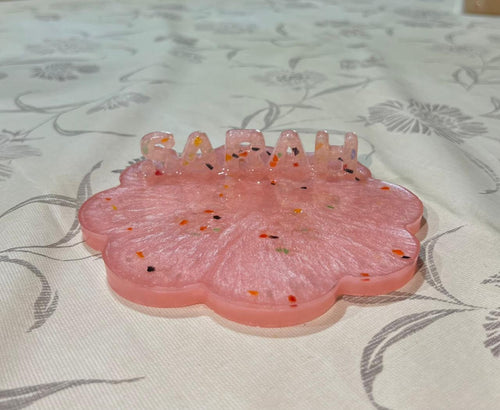 Custom Resin Name Coaster – Handmade Floral Petal Drink Mat with 3D Lettering